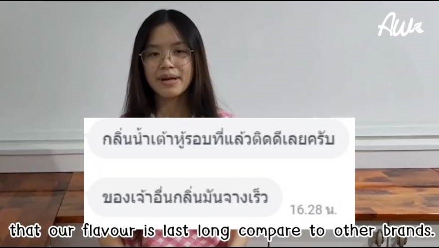 ลูกค้าได้ส่งตัวอย่างที่ใช้อยู๋ปัจจุบันมาให้เราเปรียบเทียบเป็นกลิ่นน้ำเต้าหู้ และนมสด ซึ่งทางออลวินก็ได้แนะนำกลิ่นที่ใกล้เคียงและส่งตัวอย่างไปให้ทางลูกค้า