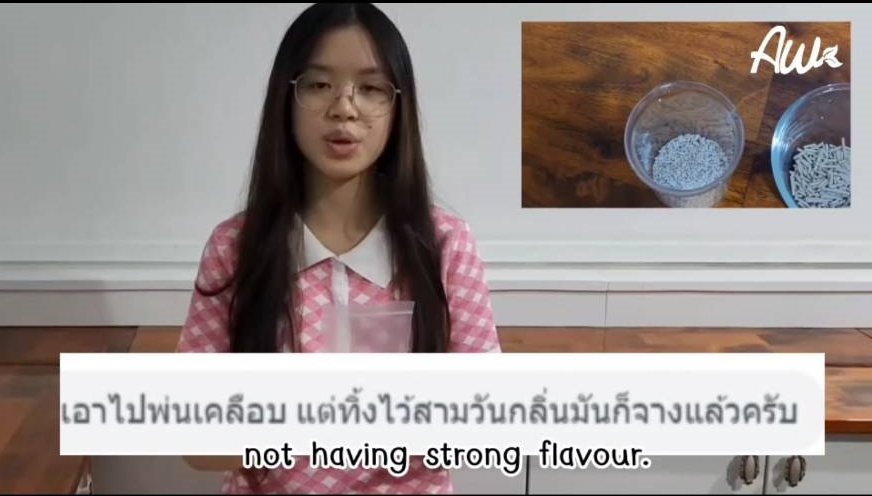 ทางลูกค้านั้นแจ้งมาว่าผลิตทรายแมวให้หอมกลบกลิ่นของน้องเหมียวนั้นต้องใช้กลิ่นอัดเข้าไปทั้งเม็ดจึงใช้กลิ่นสิ้นเปลืองมากในการผลิต และได้ลองใช้วิธีพ่นเคลือบกลิ่นแทนค่ะ